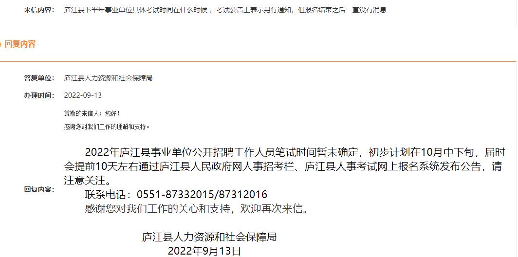 來信標(biāo)題:2022廬江事業(yè)單位考試時(shí)間