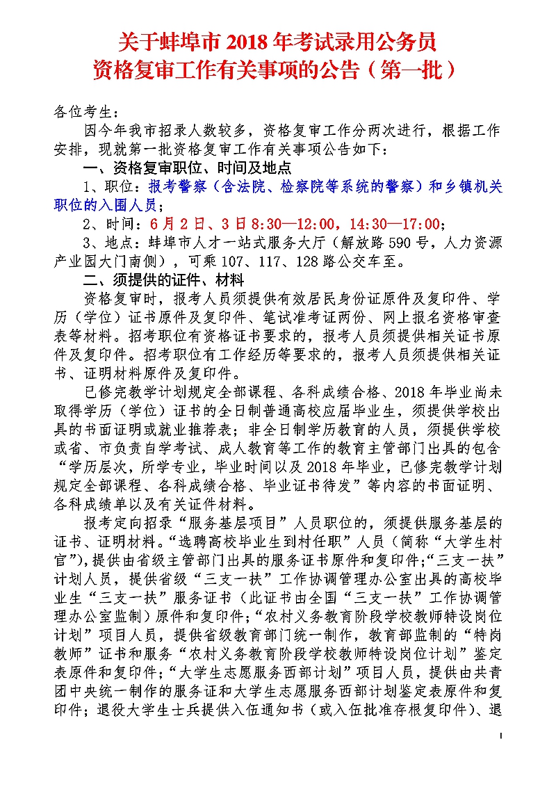埠市2018年考試錄用公務(wù)員資格復(fù)審工作有關(guān)事項的公告(第一批)