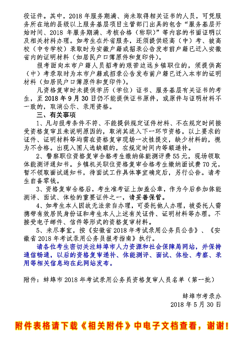 點擊下載:蚌埠市2018年考試錄用公務(wù)員資格復(fù)審人員名單(第一批)