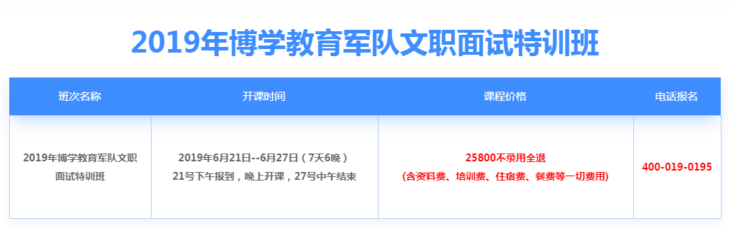 2019年博學(xué)教育軍隊文職面試特訓(xùn)班簡章(點擊查看詳情)